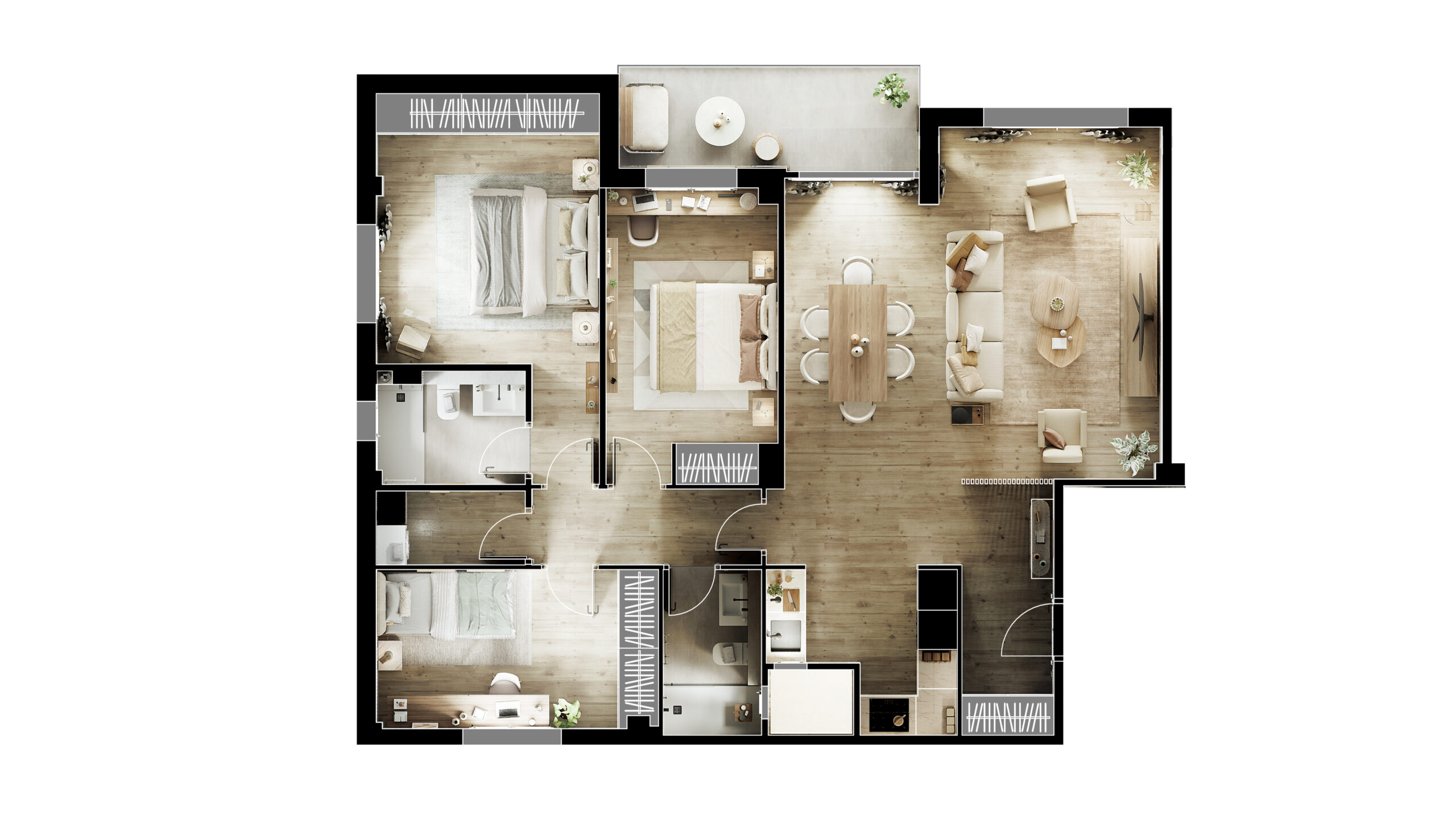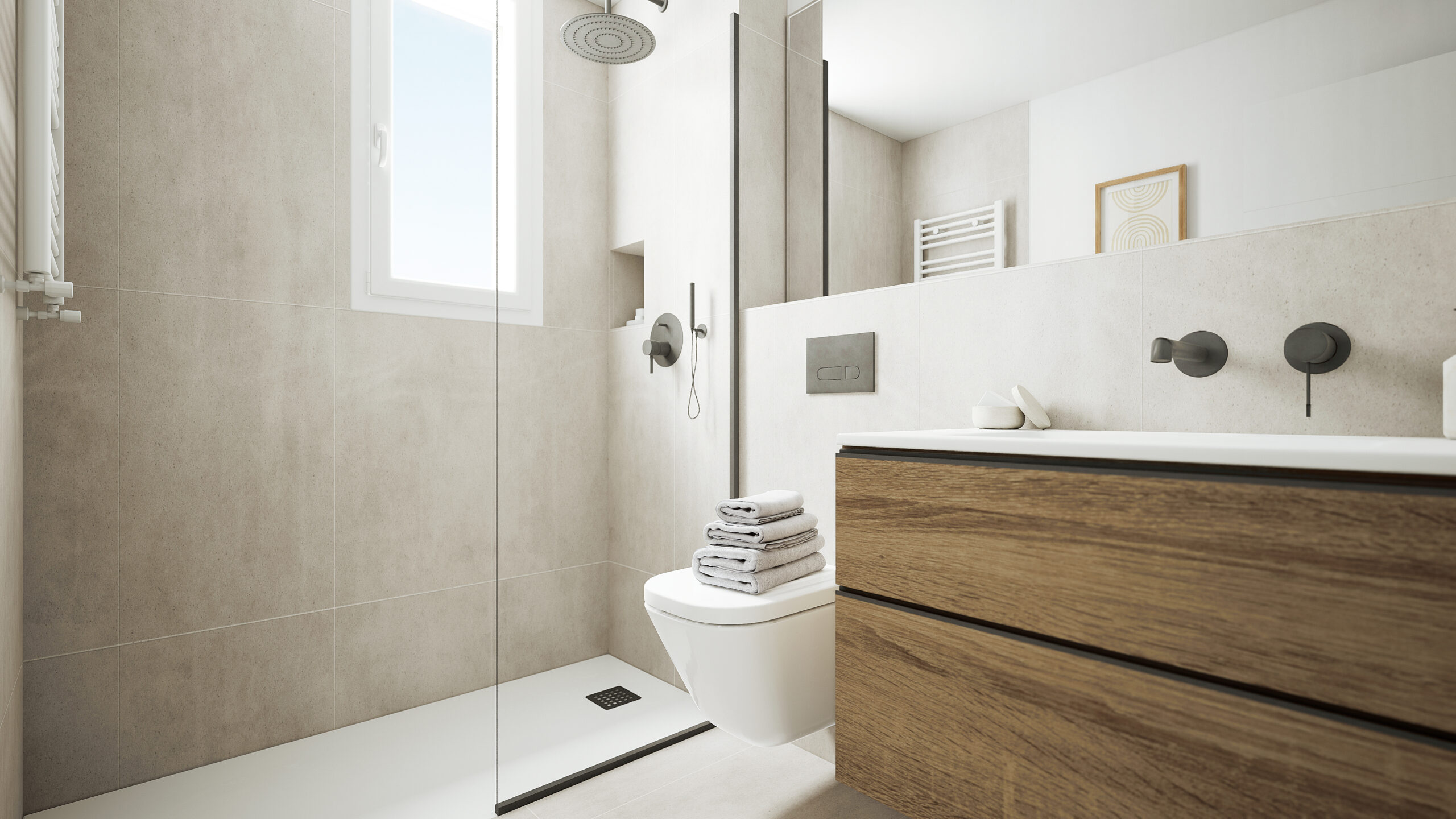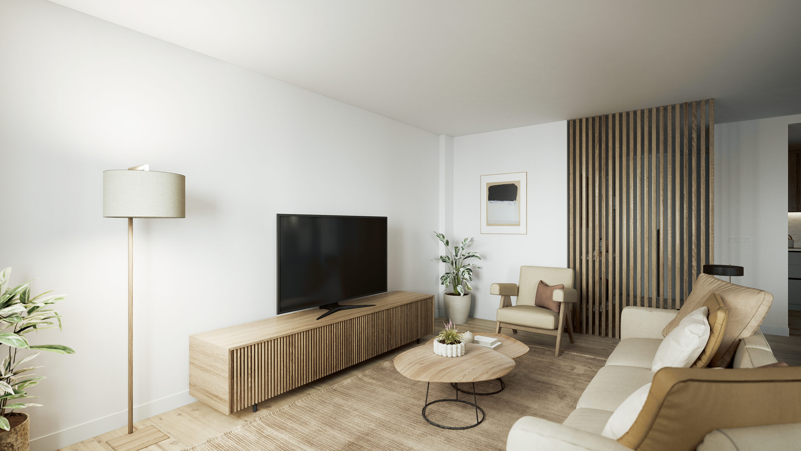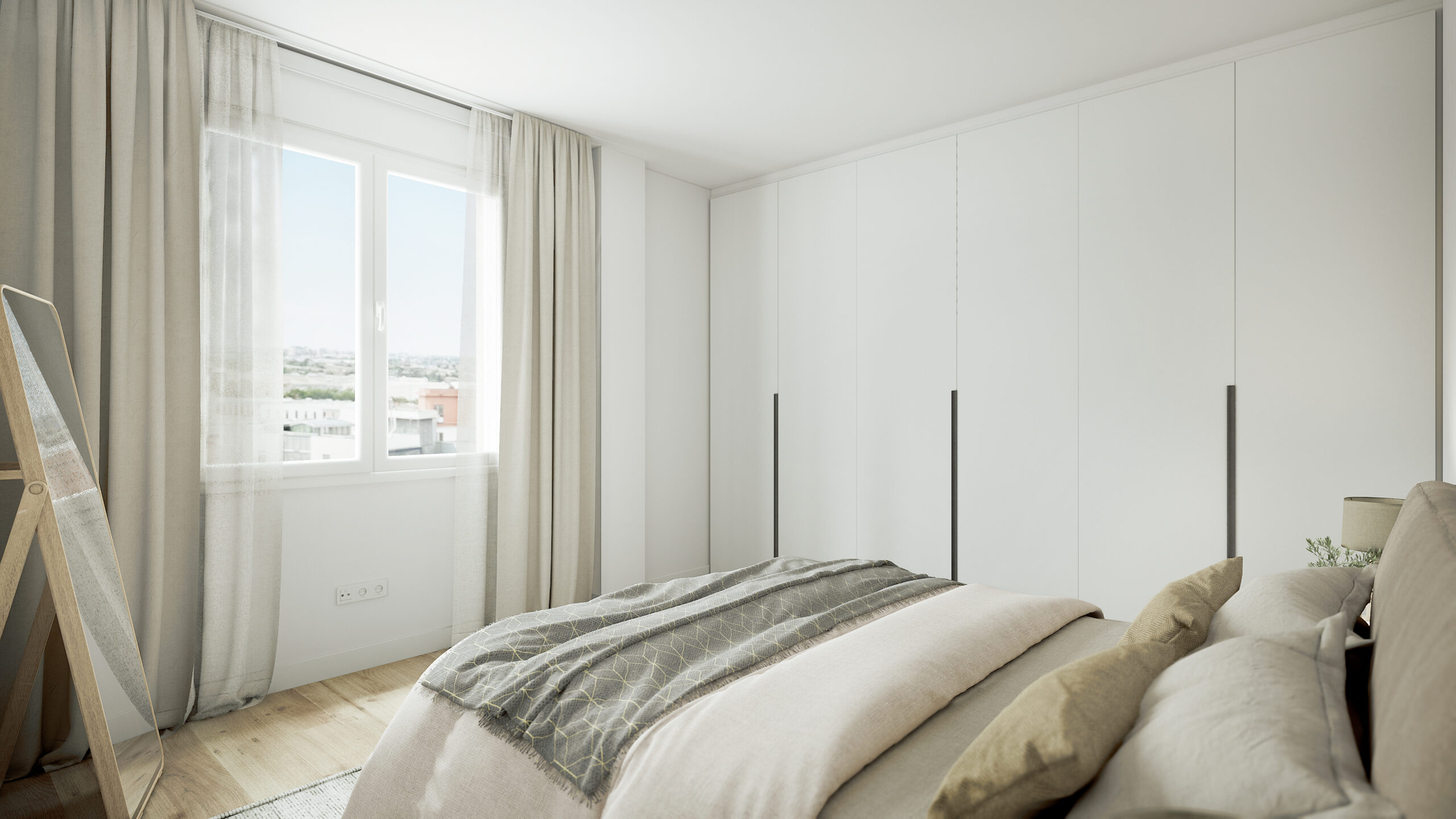Pero eso no es todo y es que la reforma que hemos proyectado y que está incluida en el precio, disfruta de suelos de parqué, electrodomésticos, iluminación led, baños suspendidos, cerramientos de PVC, persianas motorizadas, aire acondicionado frío y calor por conductos, calefacción de gas natural y todo aquello que lo convierte en un hogar cómodo y confortable.